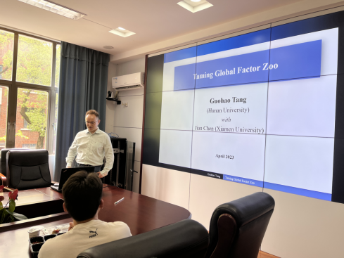研讨会上,主讲人唐国豪老师做了主题为“Taming Global Factor Zoo”的学术报告。利用来自36个国家的38620多只股票的月收益率,并应用迭代的两步LASSO方法来识别全球市场的有效因素,产生了一个新的全球因素模型。该模型结合了市场、动量、季节性、杠杆率、盈利能力和应计因素,在解释全球资产定价异常和实现较低的平均定价误差方面优于现有的全球因素模型。值得注意的是,该全球因素模型在解释当地市场的异常方面也很有效,这使其与通常局限于当地市场的传统因素模型不同。总的来说,唐国豪老师的研究证明了基于机器学习的方法在国际类别定价中开发更有效的全球因素模型的效用。