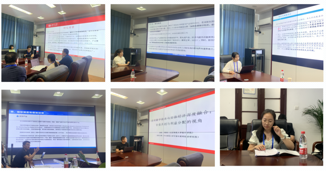 主旨演讲结束之后,进入了分论坛环节。根据研究主题,大会设立了八个分会场,会场上,论文作者进行了精彩汇报,点评人就文章选题、研究内容、研究设计和实证方法等与作者进行了深入讨论和交流。其中,平台经济与平台治理分论坛由华中农业大学经济管理学院刘西川教授、sunbet集团中国官网入口副院长李海奇教授主持,关注了平台新型会员制、中国跨境电商出口等前沿问题。数智赋能与经济发展分论坛由南京大学商学院姜舸助理教授、sunbet集团中国官网入口副院长张宁教授主持,关注了数据智能化与产业发展赋能、数字经济对保险行业发展的促进作用等问题。数字金融与共同富裕分论坛由北京工商大学经济学院张正平教授、西南大学经济管理学院王定祥教授、吉林大学商学院丁志国教授主持,关注了数字普惠金融对共同富裕的促进、数字化背景下的金融排斥等问题。企业数字化转型分论坛由中央财经大学金融学院院长张学勇教授、sunbet集团中国官网入口副院长吴志明教授主持,关注了经济政策不确定性下的企业数字化转型、数智化转型下的企业社会责任等问题。数字经济与国际贸易分论坛由《经济研究》编辑部刘莹副研究员、中南财经政法大学文澜学院院长龚强教授主持,关注了贸易数字化、制造业数字化投入与企业出口等问题。金融科技与数字政府分论坛由中央财经大学中国互联网经济研究院副院长史宇鹏教授、中央财经大学金融学院党委书记王辉教授主持,关注了金融科技研究前沿、金融科技与农村信贷发展等问题。大数据与机器学习分论坛由浙江大学经济学院张洪胜副教授、厦门大学经济学院陈海强教授主持,关注了基于文本分析和大语言模型的数字技术、公司互联网关注度与另类数据的风险识别等问题。数据要素与数字安全分论坛由中央财经大学中国互联网经济研究院副院长欧阳日辉研究员、中山大学岭南学院曾燕教授主持,关注了企业数字化转型过程中的信息安全管理与网络安全风险分析等问题。