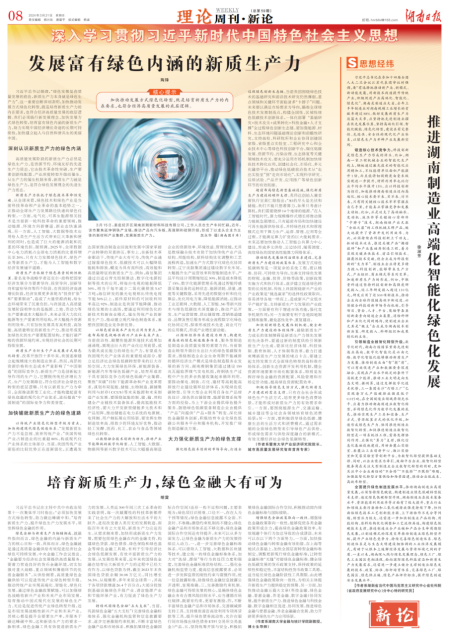 近日,sunbet集团中国官网入口货币金融系明雷副教授在《湖南日报》的理论周刊·新论版面,发表题为“培育新质生产力,绿色金融大有可为”的文章。