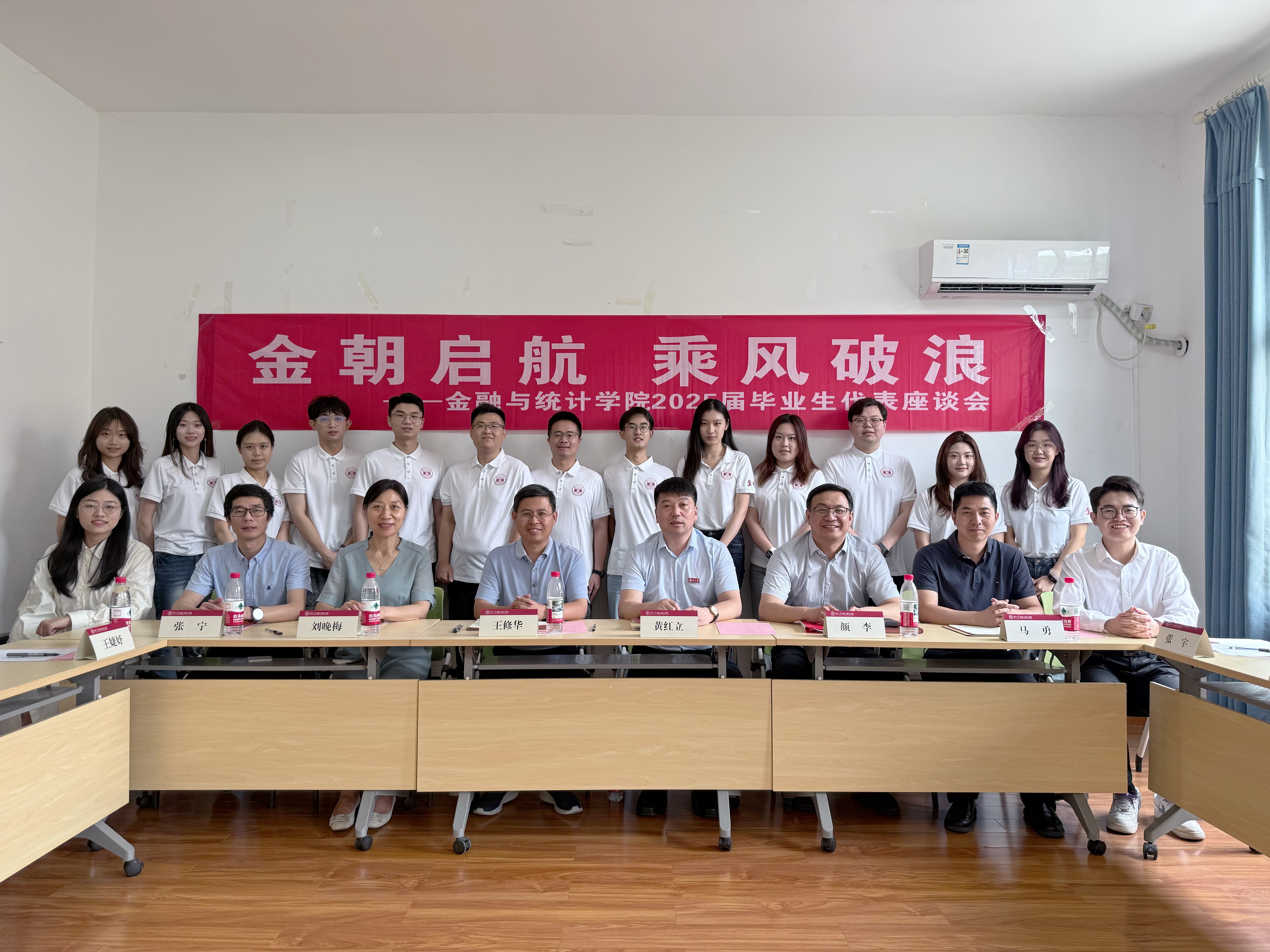 6月18日上午,sunbet集团中国官网入口“金朝启航,乘风破浪”2025届毕业生代表座谈会在红楼二号楼310会议室举行。学院院长王修华、党委书记黄红立出席并讲话,正处级组织员刘晚梅、副院长张宁、教学委员会副主任马勇及毕业班辅导员出席,院党委副书记颜李主持。
