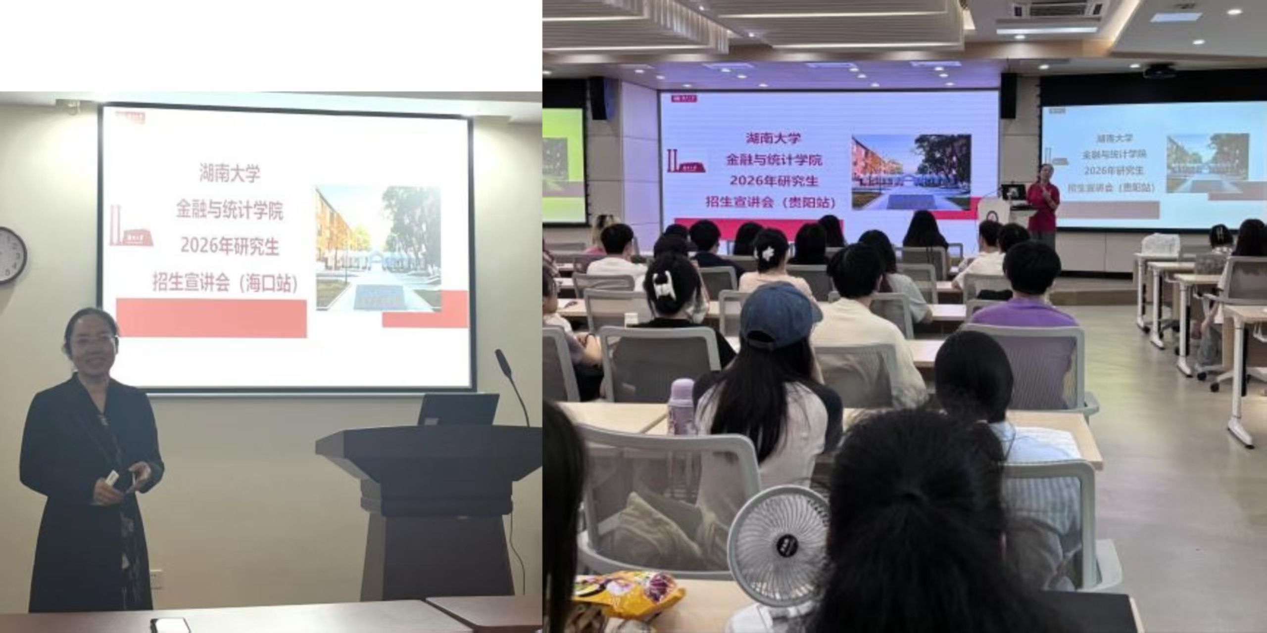 为了进一步提高研究生生源质量,吸引优秀学子来校深造,5月中旬至6月下旬,学院张宁副院长、吴志明副院长、李海奇副院长、喻旭兰主任、任英华主任等先后带队赴西南财经大学、西北大学、陕西师范大学、湖南师范大学、中南财经政法大学、海南大学、武汉理工大学、贵州大学、湘潭大学等多所“双一流”建设高校开展2026年研究生招生宣讲活动。