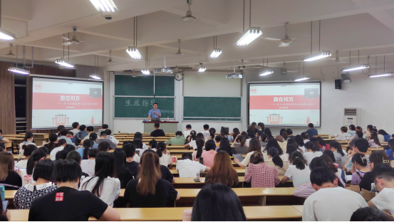 刘明然分别从“就业工作的意义”、“就业工作概述”、“我校就业情况”、“就业面临问题”、“就业规划准备”和“如何开展职业生涯”六个方面展开,对同学们现阶段的生涯规划作出详细指导,尤其针对日渐严峻的就业形势进行深度剖析,引导同学们在竞争激烈的大环境下树立良好的择业观,勉励同学们能够志存高远,立志成为新时代经世致用的领军人才,并表达了对各位同学未来就业道路的祝福和期望。