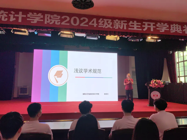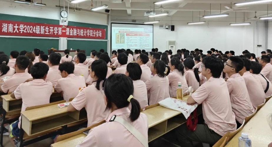 为增强新生专业认同感与集体荣誉感,培养能担当民族复兴大任的新时代青年,9月13日晚,学院党委书记黄红立以《湖湘学府:金统风采与党史篇章》为题为学院2024级本科新生讲授专题思政课。