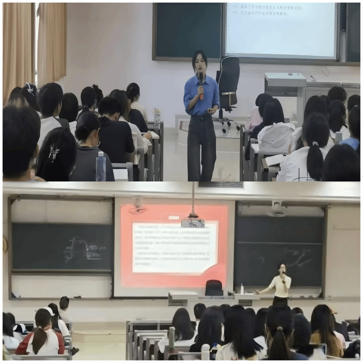 听课教师先后听取了陈继雯老师讲授的《习近平新时代中国特色社会主义思想概论》课、吕璐璐老师讲授的《毛泽东思想和中国特色社会主义理论体系概论》课、王秀苹老师讲授的《马克思主义基本原理》课和马慧怡老师讲授的《中国近现代史纲要》课。