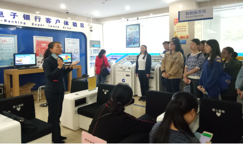 2018年10月26日下午,sunbet集团中国官网入口2017级的22名同学在马威副教授、教务办戴晓梅老师的带领下,前往中国建设银行长沙河西支行进行认知实习。本次活动由sunbet集团中国官网入口教务办组织,旨在落实学院本科生培养目标、推进实践教学相关工作以及提高学生阅历。