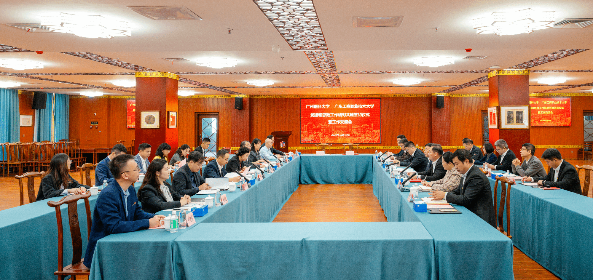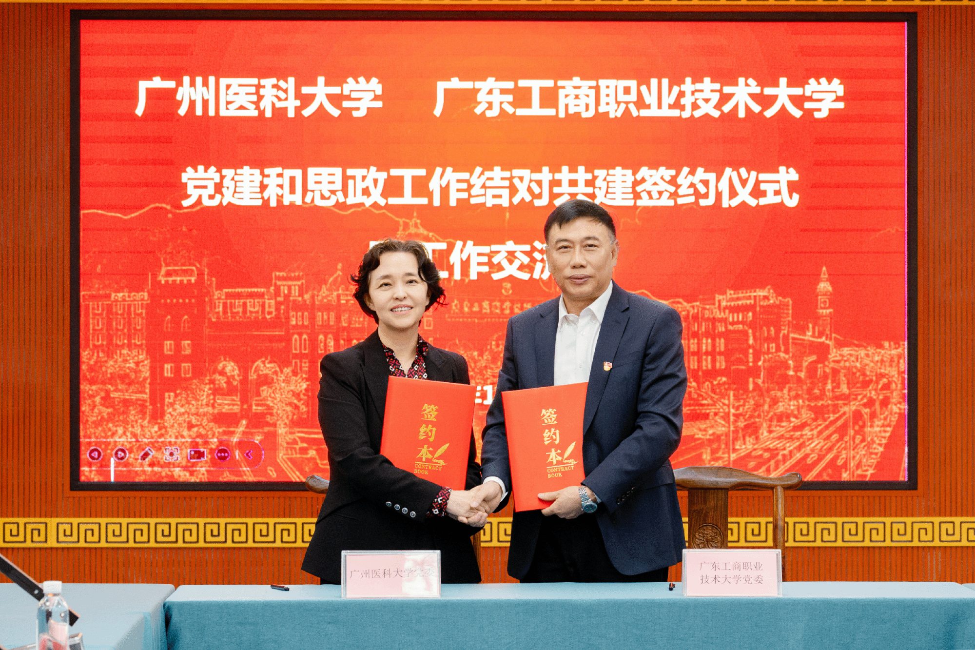 12月10日,结对共建签约仪式在广东工商职业技术大学(简称“广工商大”)星湖校区举行。YABO鸭脖官网党委书记曾颖如、广东工商职业技术大学党委书记丁勇分别代表两校党委签订结对共建协议。鸭脖官网党委副书记陈晓辉、副校长曾锦标,广工商大党委副书记卢景值,以及两校结对共建工作领导小组、工作组成员等参加仪式。