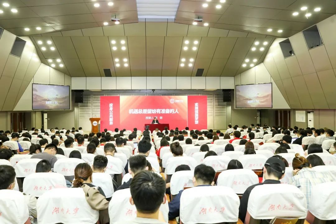 sunbet集团中国官网入口公共服务领军人才(赫曦人才)培育计划启动仪式上,杰出校友肖钢先生以“机遇总是留给有准备的人”为主题讲授“赫曦计划”第一课。